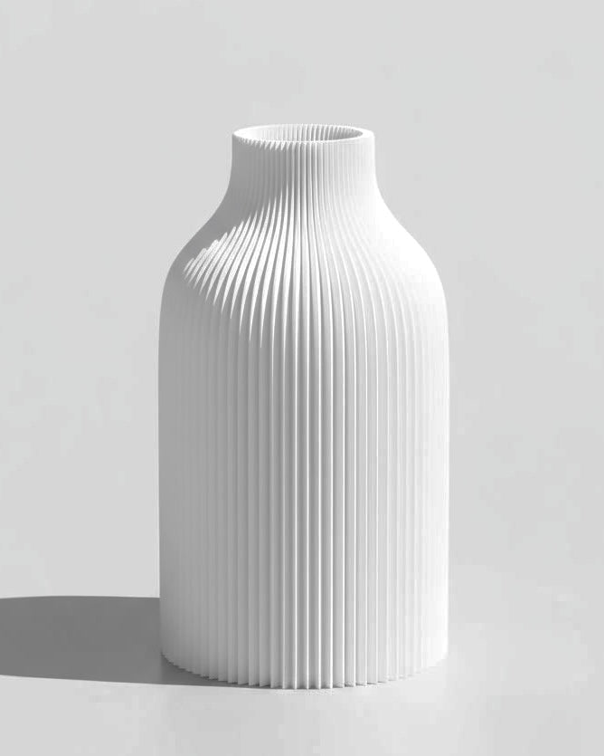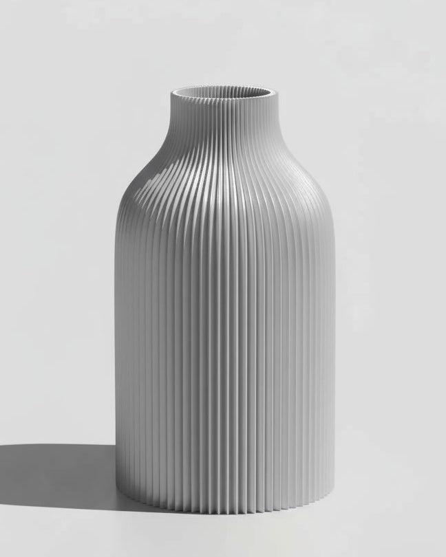 Introduce refined simplicity into your decor with the Ilis Vase, a contemporary piece that embodies balance and form. Its elongated cylindrical shape and delicately ribbed texture create a striking play of light and shadow — a perfect statement of understated luxury.